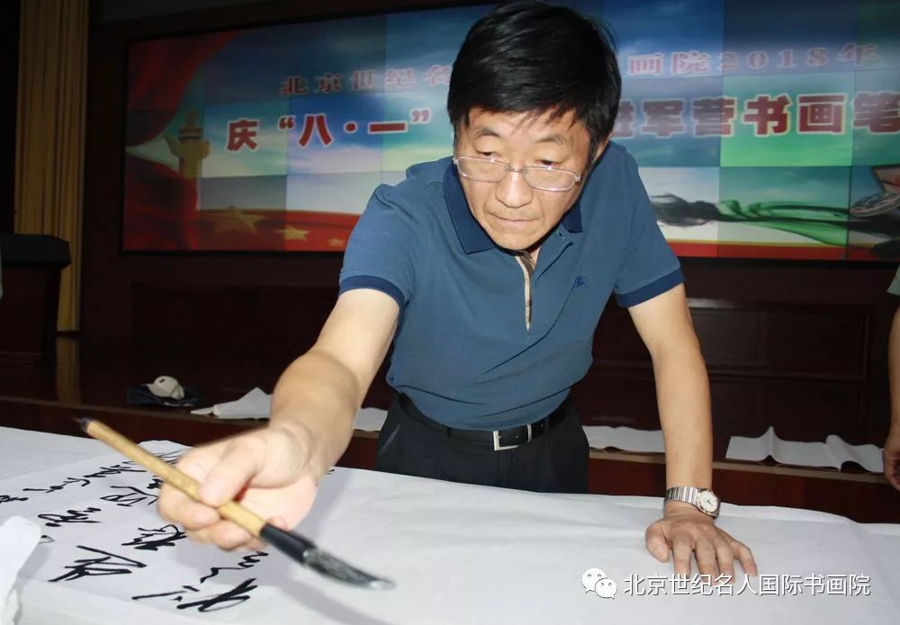 在随后举行的庆“八一”名人名家书画笔会上,著名书法家梁东为笔会开笔挥就“撼山易,撼解放军难”,表达了全体书画家的心声。中国人民解放军少将吴兵,中国书协会员、名人书画院副院长兼秘书长汪碧刚,名人书画院副秘书长、知名书画家彭一超、李小成、王巨亭、钱建恒,中国书协会员、名人书画院院士李然、刘天增、赵冠一、柳清芬等现场挥毫泼墨,为部队官兵创作出不同书体和风格的书法作品200余幅,书画家们还为部队创作了多幅山水和人物画作品。因事未能参加现场活动的第六届中国书协理事、名人书画院副院长朱守道,中央国家机关美协理事张京平特为活动送去了慰问作品。