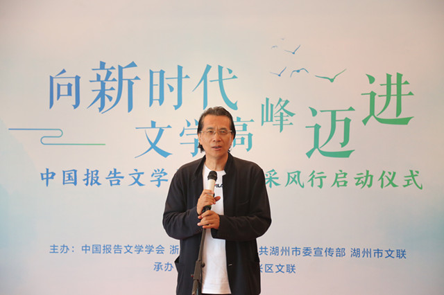 9月1日,由中国报告文学学会、浙江省作家协会、湖州市委宣传部、湖州市文联主办,湖州文学院承办的“向新时代文学高峰迈进——中国报告文学作家湖州采风行”在湖州启动。此次活动是庆祝改革开放40周年的报告文学系列活动之一。中国作协副主席、中国报告文学学会会长何建明,浙江省作协党组书记臧军,湖州市委常委、宣传部长范庆瑜出席启动仪式并发表讲话和致辞,市文联党组书记沈宝山介绍采风安排情况。启动仪式由湖州市委宣传部副部长龚贵庭主持。