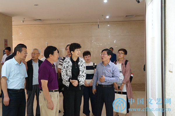 9月12日,“庆祝改革开放四十周年·大国工匠——中国石油书法篆刻精品展”开幕式在京举行。图为中国文联党组成员、副主席赵实,中国文联党组成员、书记处书记陈建文等参观展览。