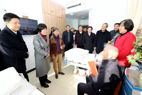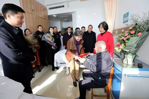 焦作市委副书记刘涛代表市委、市政府向谢延信送上了鲜花和新春的祝福,并详细询问了谢延信家里生活情况。“谢师傅,我们来看看您,家里有什么困难要及时向组织提出来,并现场要求中站区、解放区有关负责人做好劳模先进的帮扶工作,叮嘱中央医院医护人员要全心全意治疗好,照顾好谢延信。”
