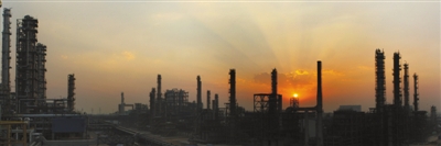 我以前去过五阳煤矿,今年6月24日,我再次慕名来到五阳矿。五阳矿有了一个新的名字,叫山西潞安煤基合成油示范厂。在示范厂,我没有看到井架、煤仓,更没有看到落地煤和矸石山,看到的是高耸入云的筒塔,各种纵横交错的管道,还有管道下面碧波一样的绿地。据介绍,煤从地下采出后,就直接被送进了封闭性的管道,开始一系列煤变油的化学变化过程。在整个厂区,我再也看不到传统煤矿的模样,收入眼底的更像是一个现代化的化工厂。在我的想象里,煤变油可能如粮食变酒差不多,在管道的终端,就会有油汩汩地流出来。我把复杂过程想象得过于简单了,也过于浪漫了,我没有看见油从管道出口流出来的景象,在成品展示室里,我才看到了煤炭液化之后所变成的油。那些油品有的盛在透明的塑料桶里,有的盛在精美的玻璃瓶里,称得上琳琅满目,让我眼界大开。