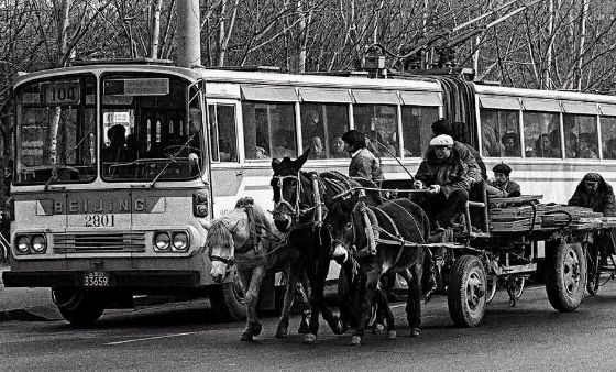 上世纪80年代初,北京的无轨电车和公共汽车慢悠悠行驶在空荡荡的马路上,还不难看到的是,拉货、送菜的马车与汽车并驾齐驱。那时进城的马车牲口屁股后面都必须佩带一个白色布兜,形状呈斗状,一头挂在马屁股上,一头拴在车辕上,以便接住牲口粪便,保证道路卫生和市容。没有粪兜的马车是被禁止进城的。