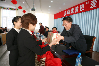 吴中林为吴晓煜颁发了荣誉证书和纪念杯。他还代表元宝山区教育局对吴晓煜的到来以及平庄煤业对教育事业的关心与支持表示感谢。