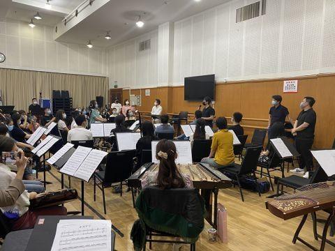 北京演艺集团旗下北京民族乐团排练厅内,大型民族管弦乐组曲《中轴》正在紧张排练,将于6月13日文化和自然遗产日当晚在中山音乐堂首演。