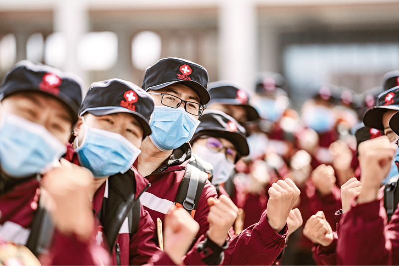 疫情防控,坚持全国一盘棋。兵“桂”神速、“湘”互扶持、竭“晋”全力、鼓足“赣”劲、力“皖”狂澜、“粤”来越好……疫情发生后,党中央、国务院统筹开展新中国成立以来规模最大的医疗支援行动。用10多天时间先后建成火神山医院和雷神山医院、大规模改建16座方舱医院、迅速开辟600多个集中隔离点,19个省区市对口帮扶除武汉以外的16个市州,最优秀的人员、最急需的资源、最先进的设备千里驰援,在最短时间内实现了医疗资源和物资供应从紧缺向动态平衡的跨越式提升。各行各业扛起责任,国有企业、公立医院勇挑重担,460多万个基层党组织冲锋陷阵,400多万名社区工作者在全国65万个城乡社区日夜值守,各类民营企业、民办医院、慈善机构、养老院、福利院等积极出力,广大党员、干部带头拼搏,人民解放军指战员、武警部队官兵、公安民警奋勇当先,广大科研人员奋力攻关,数百万快递员冒疫奔忙,180万名环卫工人起早贪黑,新闻工作者深入一线,千千万万志愿者和普通人默默奉献……全国人民都“为热干面加油”!