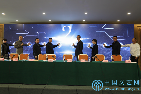 3月27日,“登攀计划”中国电视新文艺群体英才培养项目开班仪式在京举办。图为出席开班仪式的领导嘉宾共同启动“登攀计划”中国电视新文艺群体英才培养项目。中国文艺网 白安琪 摄