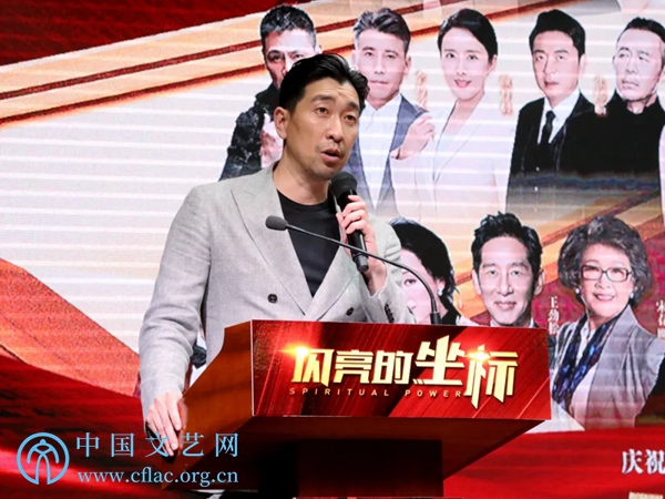 5月10日,《闪亮的坐标》全媒体上线播出新闻发布会在京举行。图为演员刘劲作为讲演代表致辞。