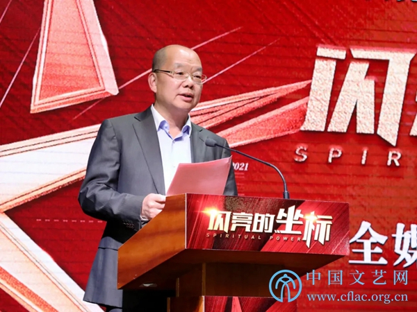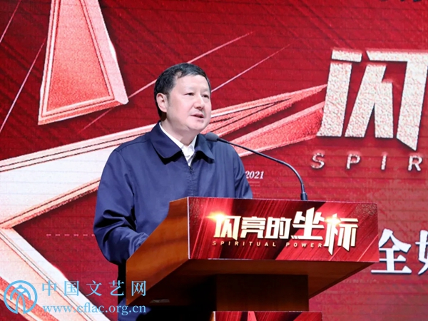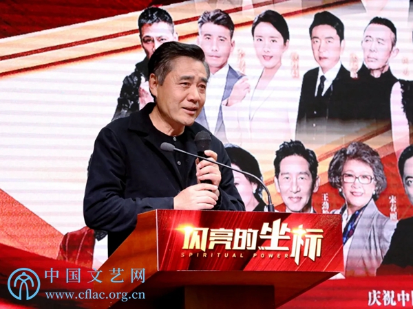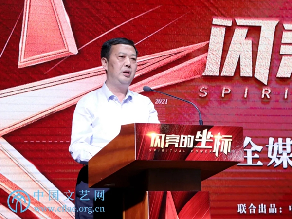5月10日,《闪亮的坐标》全媒体上线播出新闻发布会在京举行。图为中国文联党组成员、副主席胡孝汉在发布会上致辞。