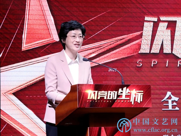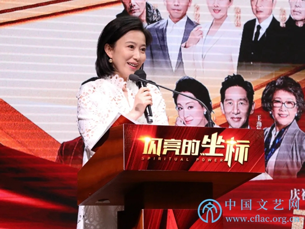 5月10日,《闪亮的坐标》全媒体上线播出新闻发布会在京举行。图为中国视协分党组成员、副秘书长、一级巡视员范宗钗在发布会上致辞。