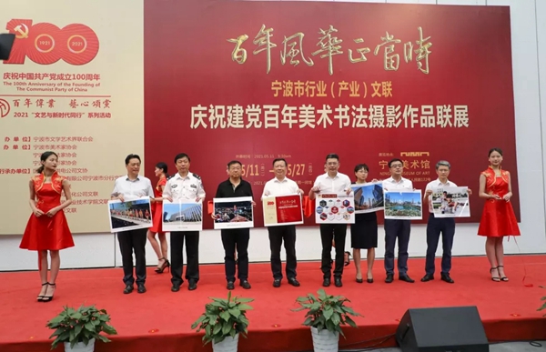 宁波市文联主办的百年风华正当时——宁波市行业(产业)文联庆祝建党百年美术书法摄影作品联展开幕,这是宁波市各行业(产业)文联第一次集体创作的联展。展览作品展现了广大企业职工、公安干警、教职员工攻坚守岗的生动形象,表达了文艺爱好者对美好生活的真挚憧憬。