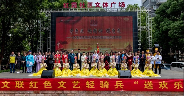 武汉市文联”学党史 传精神 跟党走”文艺志愿服务平安建设活动走进青菱街红霞社区,为居民送演出、赠书法作品、开展党史知识问答,推动文艺志愿服务和党史学习教育深度融合,引导带动文艺志愿者和人民群众学史明理、学史增信、学史崇德、学史力行。