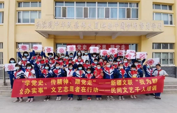 新疆文联“我为群众办实事”文艺志愿者在行动——民间文艺千人培训活动举办。活动在喀什地区麦盖提县教育局和第五小学举办。直观的课堂教学,让党史课程“有看头、有听头、有学头”。
