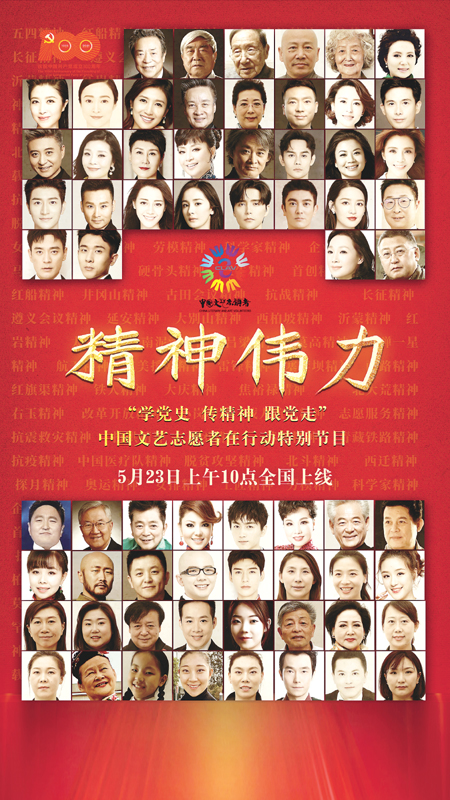 今年4月至5月,中国文联、中国文艺志愿者协会创新举办“学党史 传精神 跟党走”——中国文艺志愿者在行动主题宣传活动。主题活动联动全国各级文联组织共同策划、编排、传播,是一次国家、省、市、县、乡、村六级文艺志愿者的集体行动。5月23日,在毛泽东同志《在延安文艺座谈会上的讲话》发表79周年、第8个中国文艺志愿者服务日之际,由中国文联、中国文艺志愿者协会主办的“精神伟力——‘学党史 传精神 跟党走’中国文艺志愿者在行动特别节目”在中央、省、市、县1100多家媒体平台上线播出。