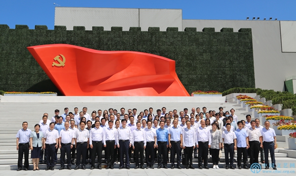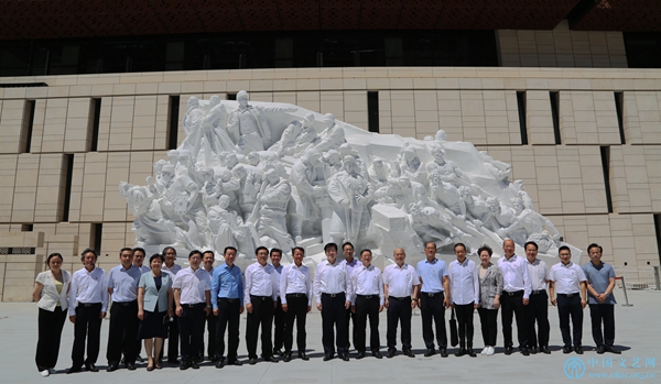 7月4日,中国文联组织参观“‘不忘初心、牢记使命’——中国共产党历史展览”。图为中国文联党组书记、副主席李屹,中国文联党组成员、副主席胡孝汉,中国文联党组成员、书记处书记张雁彬等在巨型雕塑《攻坚》前合影。中国文艺网 王丽摄