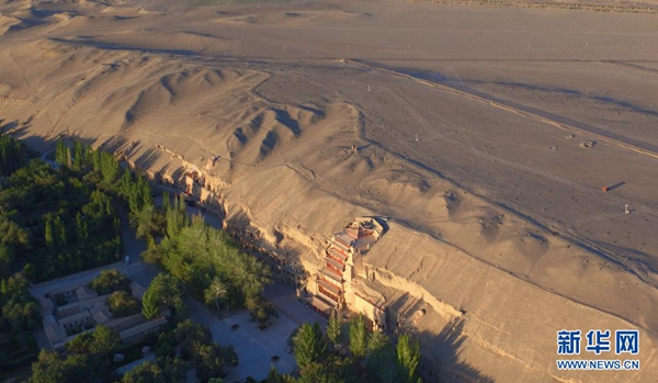 世界文化遗产莫高窟(2016年9月7日摄,无人机照片)。新华社记者 陈斌 摄