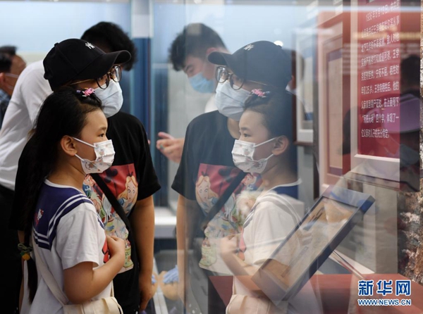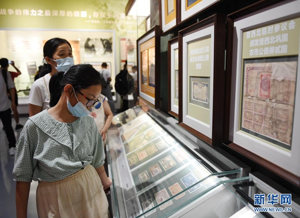 7月7日,观众在中国人民抗日战争纪念馆参观“中流砥柱——中国共产党抗战文物专题展”。新华社记者 张晨霖 摄