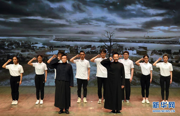电视剧《觉醒年代》主创团队走进北京大学,剧中主要演员与北大学生同台演出(4月20日摄)。新华社记者 任超 摄