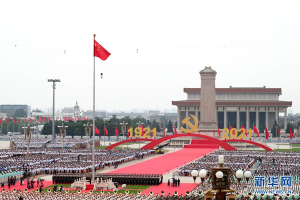 2021年7月1日,北京天安门广场。在庆祝中国共产党成立100周年大会上,习近平总书记鲜明提出伟大建党精神,在9500多万名党员、14亿多中国人民心中激荡起继往开来、砥砺奋进的磅礴力量。