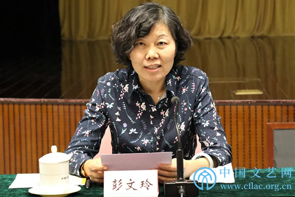 9月29日,《2021中国艺术发展报告》编撰工作启动会在京召开。图为中国摄协分党组成员、副秘书长彭文玲交流发言。
