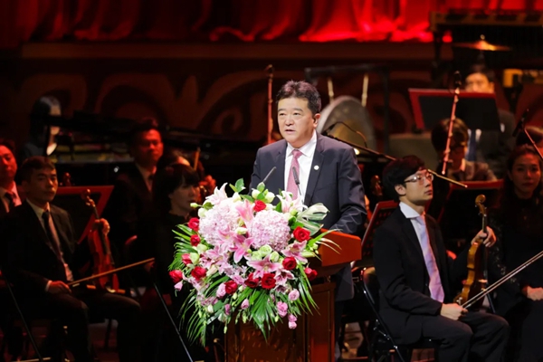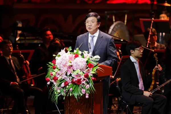 10月16日晚,第十三届中国音乐金钟奖在四川成都开幕。图为成都市委副书记、市长王凤朝致辞。