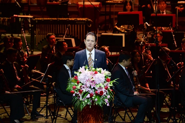 10月16日晚,第十三届中国音乐金钟奖在四川成都开幕。图为中国文联党组成员、副主席李前光致辞。