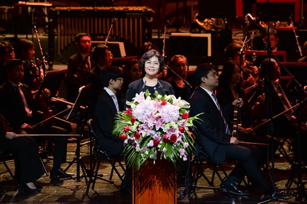 10月16日晚,第十三届中国音乐金钟奖在四川成都开幕。图为中国文联主席、中国作协主席铁凝宣布第十三届中国音乐金钟奖开幕。
