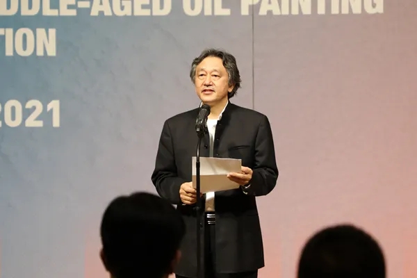 10月22日,“全国(大芬)中青年油画精品展(2012-2021)”于中国美术馆开幕。图为全国政协常委、中国美术家协会副主席、中国美术馆馆长吴为山致辞。中国文艺网 李想 摄