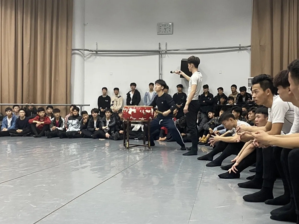 作为第十三届中国舞蹈“荷花奖”民族民间舞评奖终评金奖作品的《阳光下的麦盖提》成为了作品展示环节的亮点,演员们用饱满的热情、极富张力的肢体语言演绎出了新时代新疆各族人民的和谐幸福生活。来自山青院的《板儿一响当哩个当》也不甘示弱,借以“两铜板”的独特魅力和山东小伙儿的飒爽英姿再现了快书经典片段“武松打虎”,赢得在场师生的一致叫好。