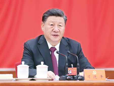 中国共产党第十九届中央委员会第六次全体会议,于2021年11月8日至11日在北京举行。中央委员会总书记习近平作重要讲话。新华社记者 鞠鹏 摄