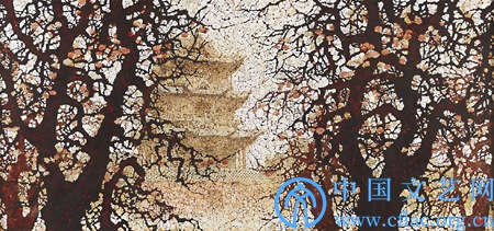 汾水古渡秋风楼(漆画) 78.5cm×163cm 2004年