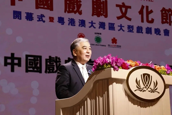 澳门特区政府文化局局长穆欣欣在致辞中说,历史造就了澳门独特多元的文化,澳门的不同族群造就了中西文化并存的澳门文化,而中华文化正是澳门文化的主调,是数百年来生活在澳门这片土地上的中华儿女努力传承、维系的血脉。澳门在粤港澳大湾区城市群中的定位为“打造以中华文化为主流、多元文化共存的合作交流基地”,这是国家给予澳门的定位,是对澳门在历史上发挥的独特作用的肯定,也是新时代下国家赋予澳门的新使命。她说,中国戏剧是一门集中华传统文化大成的综合艺术,一直不乏创新,并与时代同行。她以最中国的方式诗意地讲述中国故事,体现了圆顺和谐、举重若轻的中国气度,传递着化繁为简、以少胜多的中国智慧。她表示,热爱中华文化、热爱中国戏剧的种子已在澳门生根发芽,这是使澳门民众尤其是青少年增强国家认同感和文化自信最有效的途径,这是因为爱、所以爱的结果。