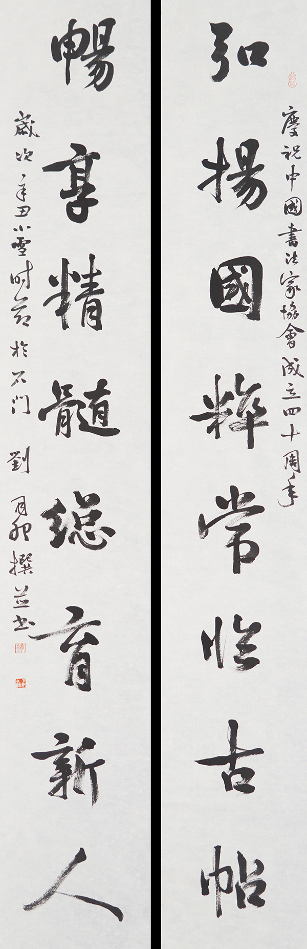 庆祝中国书法家协会成立四十周年。岁次辛丑小雪时节于石门。刘月卯撰并书。