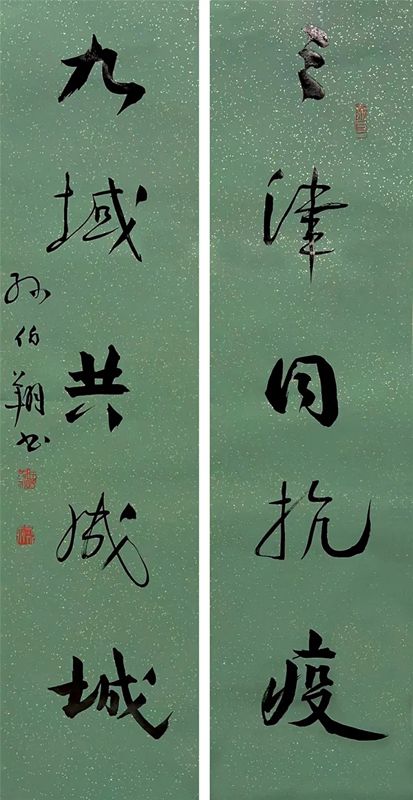 年近九旬的书法家孙伯翔主动请缨创作,并表示:“作为一名文艺老兵,我非常关心咱天津这次疫情,关心每一个天津人的安危,希望大家都健康、平安。我由衷地感谢连日来不顾严寒奋战在抗疫一线的‘战士’。大家勠力同心、共同抗疫,最终一定能战胜疫情,迎来火红热闹的新春佳节。”