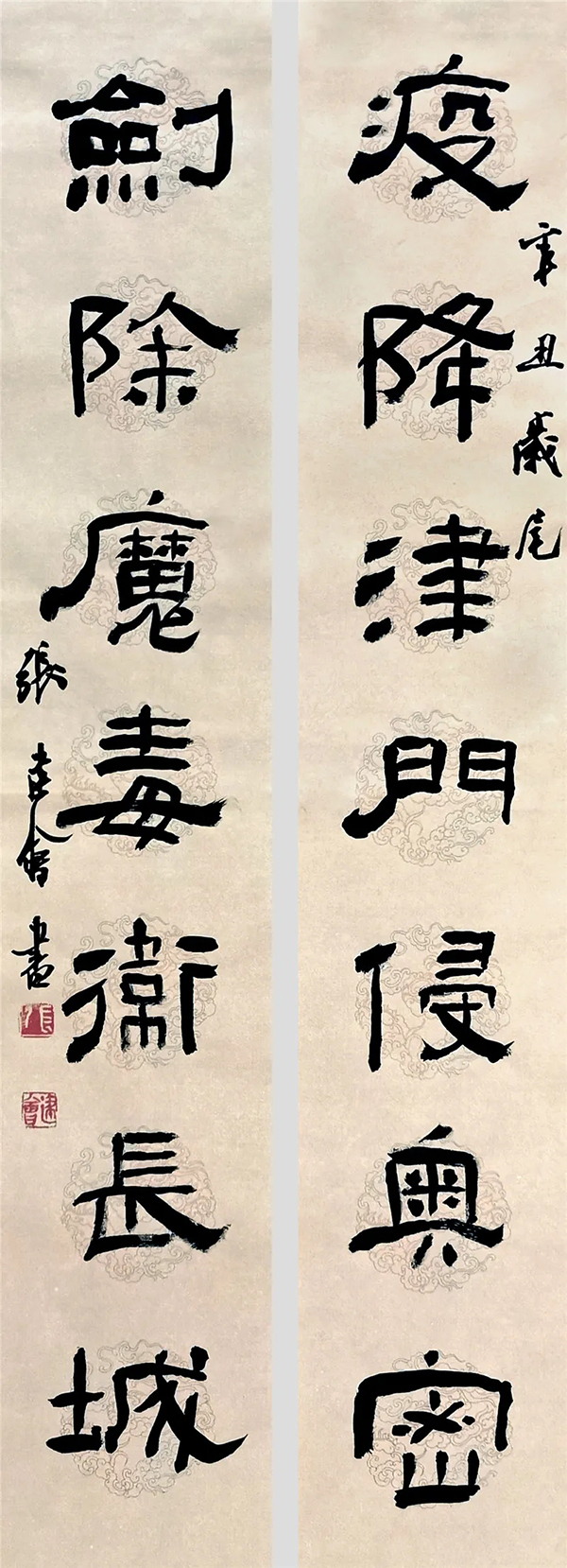 艺术家的社会责任不仅体现在为民鼓与呼的笔墨之中,更体现在为社会做贡献身体力行的每一件实事上。创作动员发起后,天津书协的广大会员纷纷行动起来,主动担起艺术家的社会职责,为援津医护人员送"福"写春联,以此来表达对他们的敬仰与感恩,在防控疫情的关键时刻,以笔墨力量传递抗疫信心,坚信上下齐心的天津人民定将共克时艰、喜迎新春。