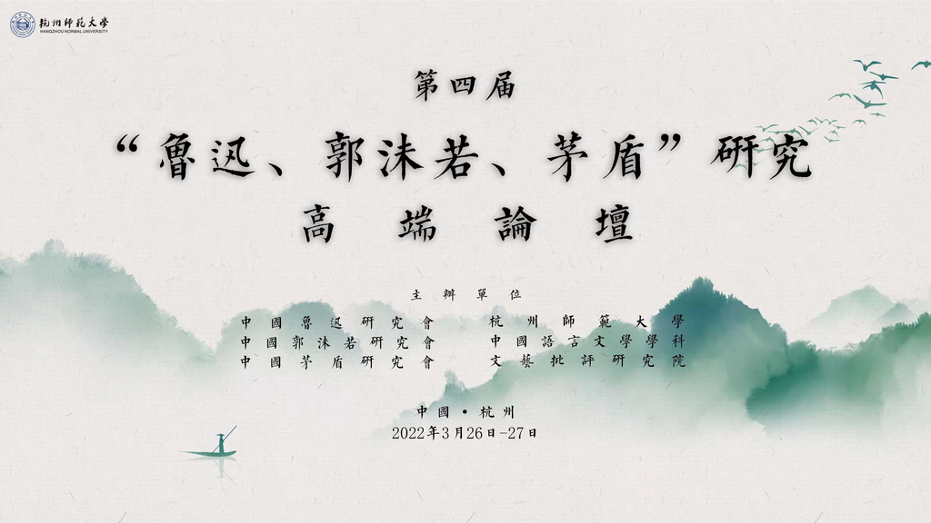 3月26日至27日,全国第四届“鲁迅、郭沫若、茅盾”研究高端论坛在杭州师范大学以线上线下相结合的方式举行。本届论坛由中国鲁迅研究会、郭沫若研究会、茅盾研究会、杭州师范大学文艺批评研究院联合主办,来自中国社会科学院、北京鲁迅博物馆、北京大学、复旦大学、中国人民大学、南京大学、华东师范大学、杭州师范大学等各地高校和学术机构的70余位资深学者和青年新秀就“鲁郭茅的创作研究”等前沿、热点问题展开了深入的交流与讨论。