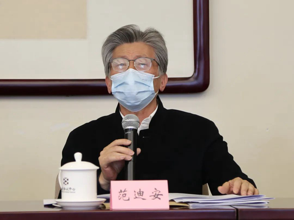 3月27日,中国文联文艺工作者职业道德建设委员会2022年全体会议在京召开。图为范迪安发言。