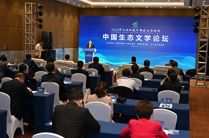 6月5日,2022年“六五环境日”国家主场活动在辽宁省沈阳市举办,期间举行了第二届中国生态文学论坛,本届论坛由中国作家协会、生态环境部和辽宁省人民政府共同主办,旨在繁荣生态文学,用丰富的文学形式、优秀的文学作品展现波澜壮阔的生态文明建设,为生态文明建设和美丽中国建设凝心聚力。生态环境部副部长翟青、中国作家协会书记处书记邱华栋出席论坛发表讲话,并向“大地文心”生态文学作家采风团授旗,辽宁省委常委、副省长王健致欢迎辞。