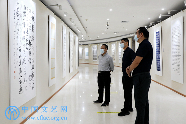 8月30日,“太湖风——无锡市书协成立四十周年作品展”在北京中国文艺家之家展览馆开幕。图为展览现场。 中国文艺网 高森 摄