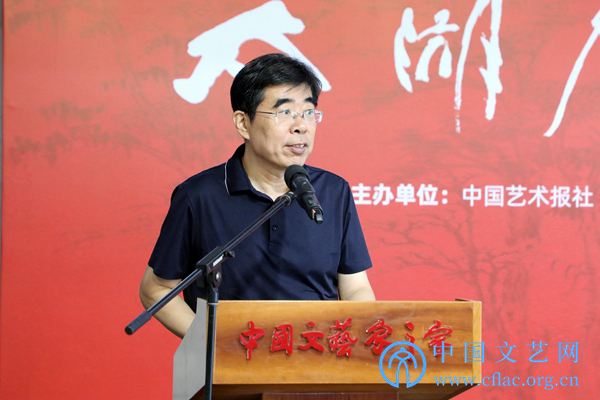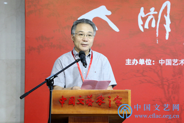8月30日,“太湖风——无锡市书协成立四十周年作品展”在北京中国文艺家之家展览馆开幕。图为中国艺术报社总编辑康伟致辞。 梁琴 摄