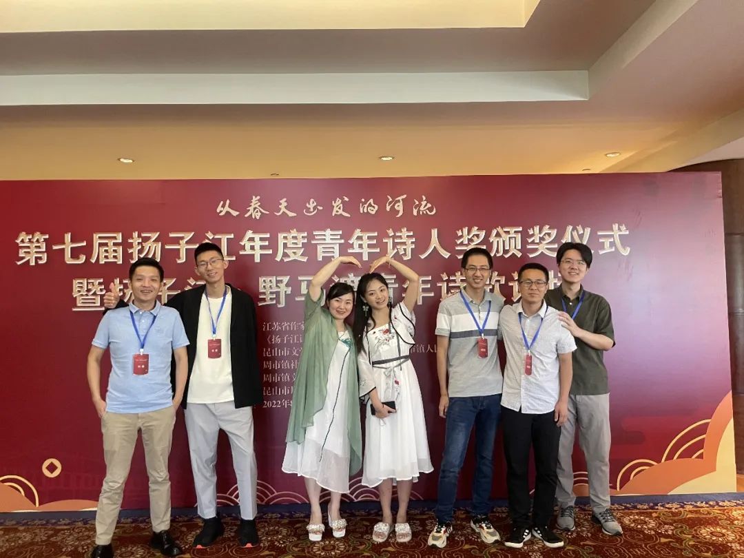 2022年8月27日,第七届扬子江年度青年诗人奖在昆山颁奖。全国人大常委会委员、中国作协诗歌委员会主任吉狄马加通过视频向获奖诗人表示祝贺。省作协党组书记、书记处第一书记、常务副主席汪兴国,《大诗歌》主编、《星星·散文诗》名誉主编周庆荣,南京财经大学党委副书记温潘亚,上海市政协对外友好委员会常务副主任安谅,安徽池州学院党委副书记崔国发,省作协副主席、《扬子江诗刊》主编胡弦,昆山市委宣传部副部长栾根玉,周市镇党委副书记、镇长孙剑波,市文联主席、党组书记冯惠清,国内著名诗人、诗评家和诗刊主编,第七届扬子江年度青年诗人奖获奖诗人、野马渡诗歌雅集成员、当地诗人和诗歌爱好者等50余人参加了颁奖典礼。