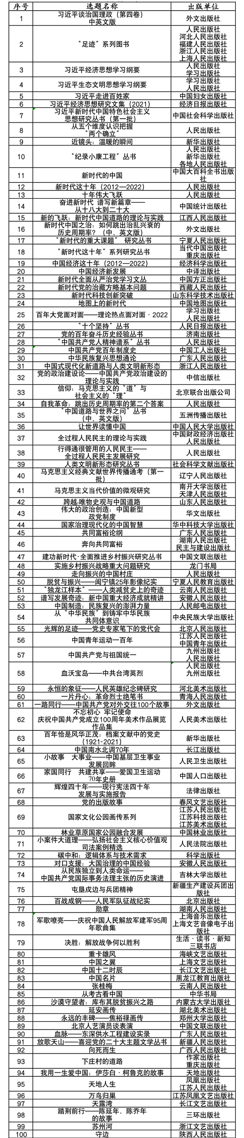 中宣部公布2022年主题出版重点出版物选题(160种)