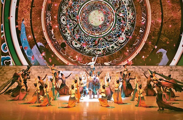 党的十八大以来,广大文艺工作者与党同心同德、与人民同向同行,围绕中心、服务大局,在文艺创作、文艺活动、文艺惠民等方面作出积极贡献、取得丰硕成果。图为2022年9月1日第十三届中国艺术节开幕式上,演员表演芭蕾《敦煌·飞天》。新华社记者 陈钟昊/摄