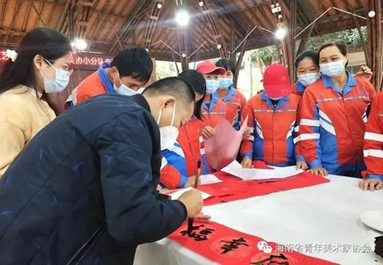 文化进万家 | 海南省青年美术协会画家为海口环卫工人义务写春联送书画送祝福 情暖环卫工人
