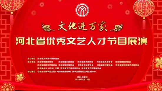 1月18日,河北省文联在石家庄市新华区文体中心组织“文化进万家——河北省文艺界优秀文艺人才节目展演”,精心打造一台充分展示文艺创新成果的精彩节目,面向群众展示培养人才、推介作品的成效和成果。