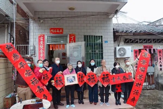 1月12日,由广东省文联、广东省书协等单位主办的“书法家送‘福’进万家”活动走进肇庆,为端州区沙街社区大菜园村村民送福送春联,村民们拿着红彤彤的春联、福字,笑容在面庞上荡漾开来。