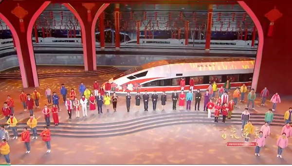 首先,高铁的设定和运用极具创意,由此形成了独特新颖、风格别致的叙事形态。一方面,它是串联的线,以不同站点衔接起文艺与各行各业共融共享的时代特征,充分展现出文艺助力乡村振兴、促进民族团结、见证粤港澳大湾区建设等时代内容和各地人民对美好生活的向往。这让整个大联欢超拔于常见的板块拼接和声光电喧宾夺主,而具有更加清晰的叙事脉络和更加自然的故事呈现。尽管内容丰富、场面缤纷,26个节目超过两个小时的演播,不知不觉到了告别时刻,但丝毫没有给人重复拖沓之感。另一方面,高铁是中国速度的象征,又很接地气,很好地把时代变革发展主题和人民群众追求美好生活的愿景熨帖地结合起来,将奋进新征程的壮阔图景与千千万万劳动者春运返乡的情感结合起来。在这里,高铁是叙事线,也是情感线,最终以情动人、以生活质感承载起了宏大叙事,彰显了大联欢主题。这种叙事形态探索,对于同类节目的变革更新,也不乏启发意义。