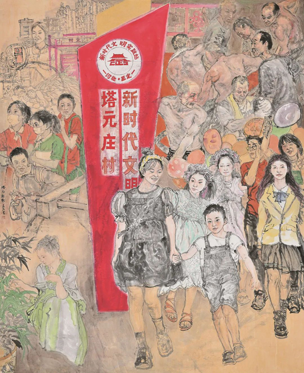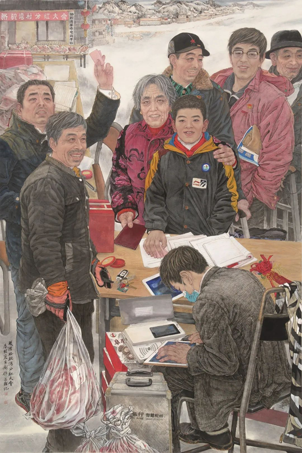 暖阳——决战脱贫攻坚骆驼湾分红大会(中国画) 倪春林