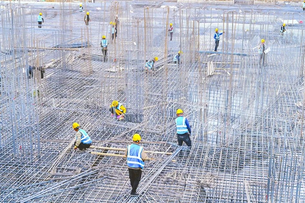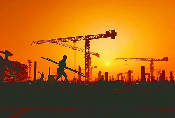 清晨,建设者们迎着朝阳,开始了一天的工作。 李辉 摄
