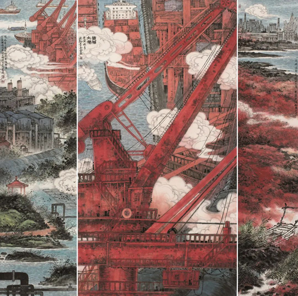 黄骅港建设(中国画) 孙鸿钧 杨贵玉