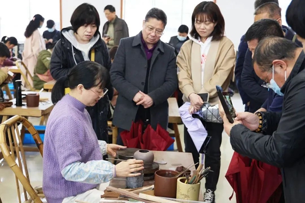 学员在宜兴市中青年文艺人才创新实践基地宜兴市丁蜀镇紫砂九隽进行现场教学